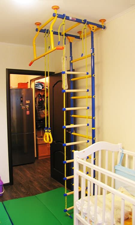 Сегменты турника изогнутой формы - могут устанавливаться как внутрь (турник ближе к шведской стенке), так и наружу (турник дальше от шведской стенки).