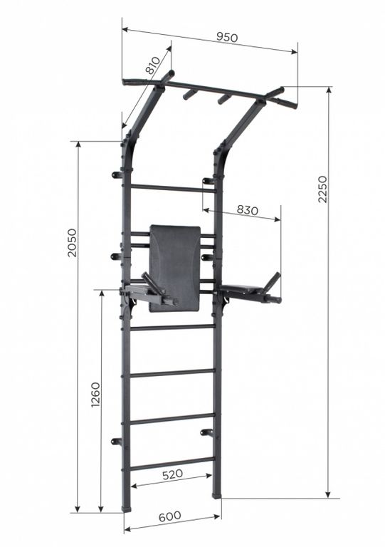 Пристенный Спортивный комплекс «Олимп» со складными брусьями с усиленным каркасом из профильной трубы.