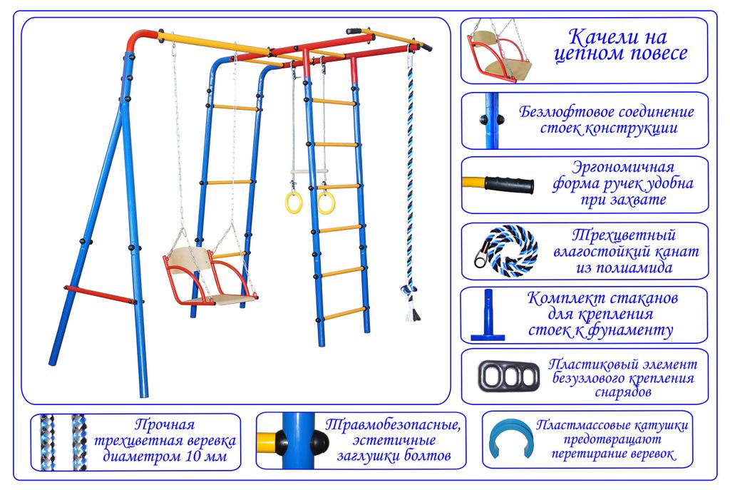 Допустимая нагрузка, кг: 100 (на турник и рукоходы до 100 кг.)