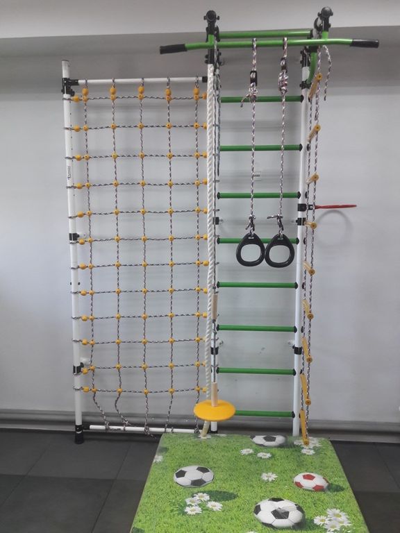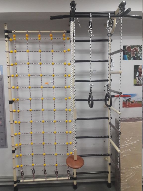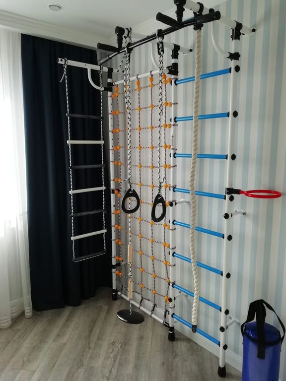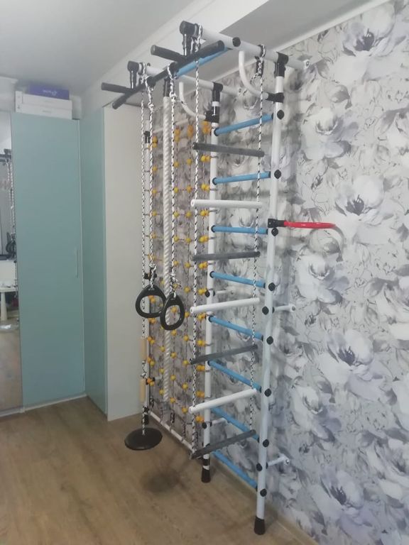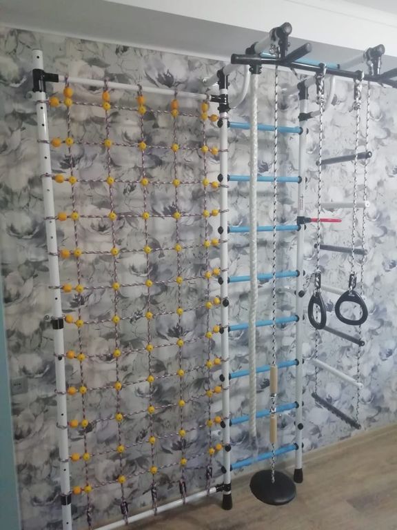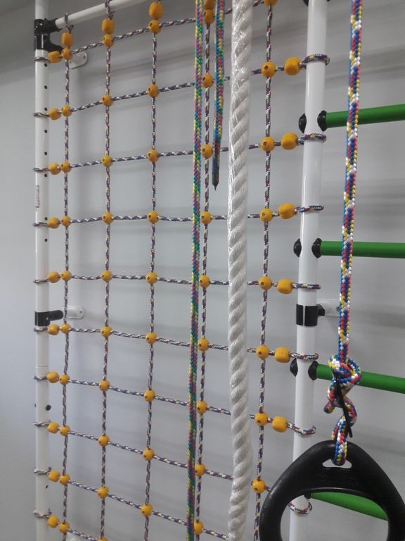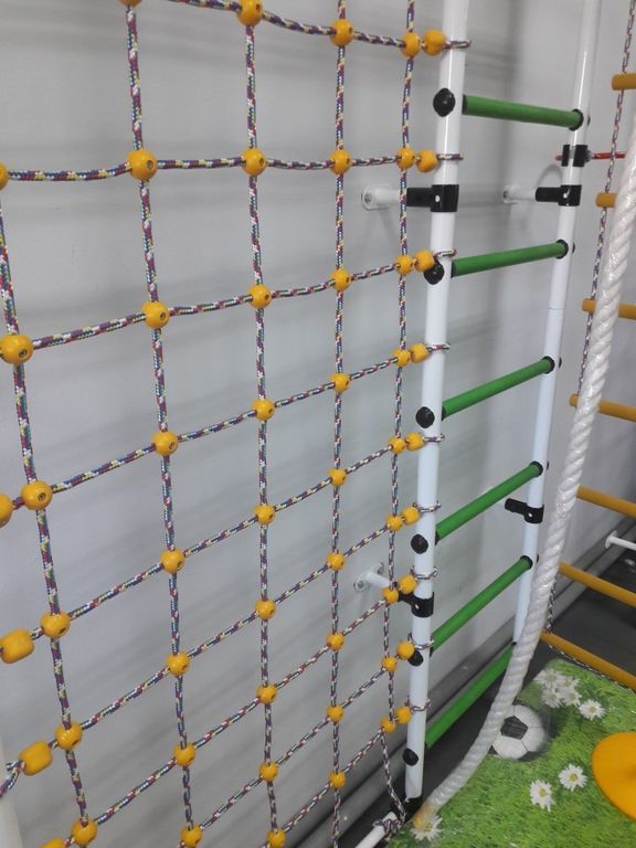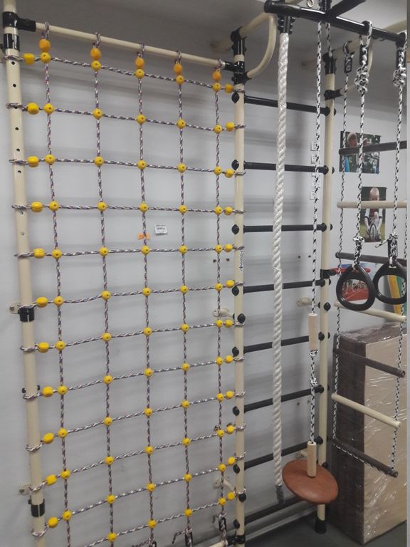 Шведская стенка "Гамма с сеткой для лазания" предназначена для выполнения различных общеразвивающих и укрепляющих упражнений, способствующих более полному физическому развитию детей.