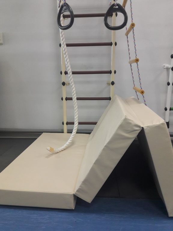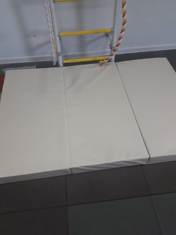 Мат гимнастический "Романа" складной 3 раза предназначен для защиты опорно-двигательного аппарата детей при выполнении гимнастических упражнений, прыжков и кувырков.
