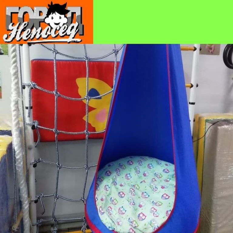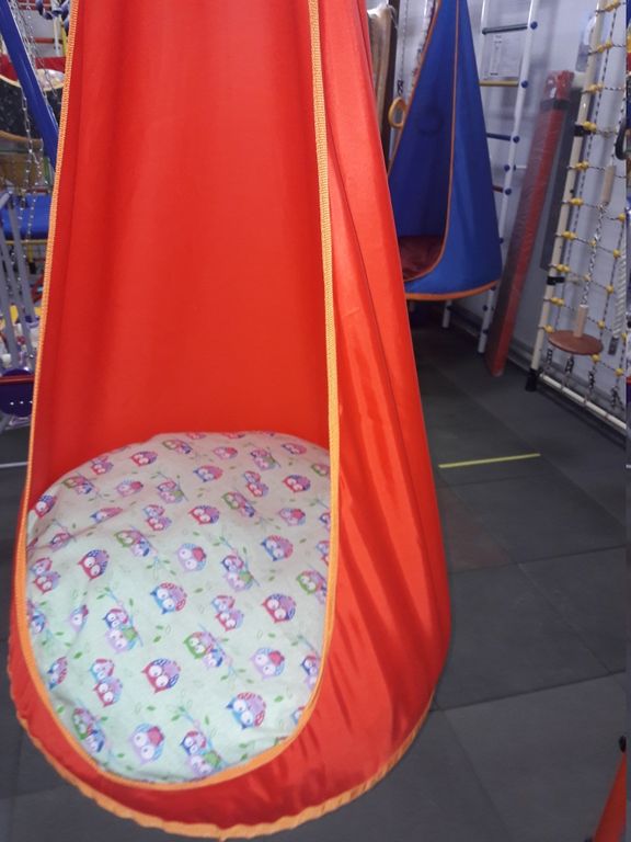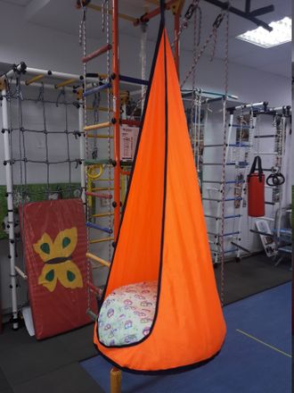 Детский подвесной гамак-качели доставит массу удовольствия вашим детям, Яркие цвета, мягкая подушка, впечатление собственного защищенного уголка, придутся по душе любому ребенку. Мягкая подушка, прочные крепления из стропы обеспечат безопасность детей.