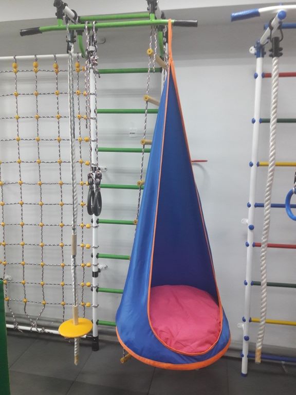 Детский подвесной гамак-качели доставит массу удовольствия вашим детям, яркие цвета, мягкая подушка, впечатление собственного защищенного уголка, придутся по душе любому ребенку. Мягкая подушка, прочные крепления из стропы обеспечат безопасность детей.