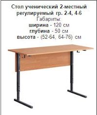 Стол ученический 2х местный , регулируемый по высоте, на прямоугольной трубе.