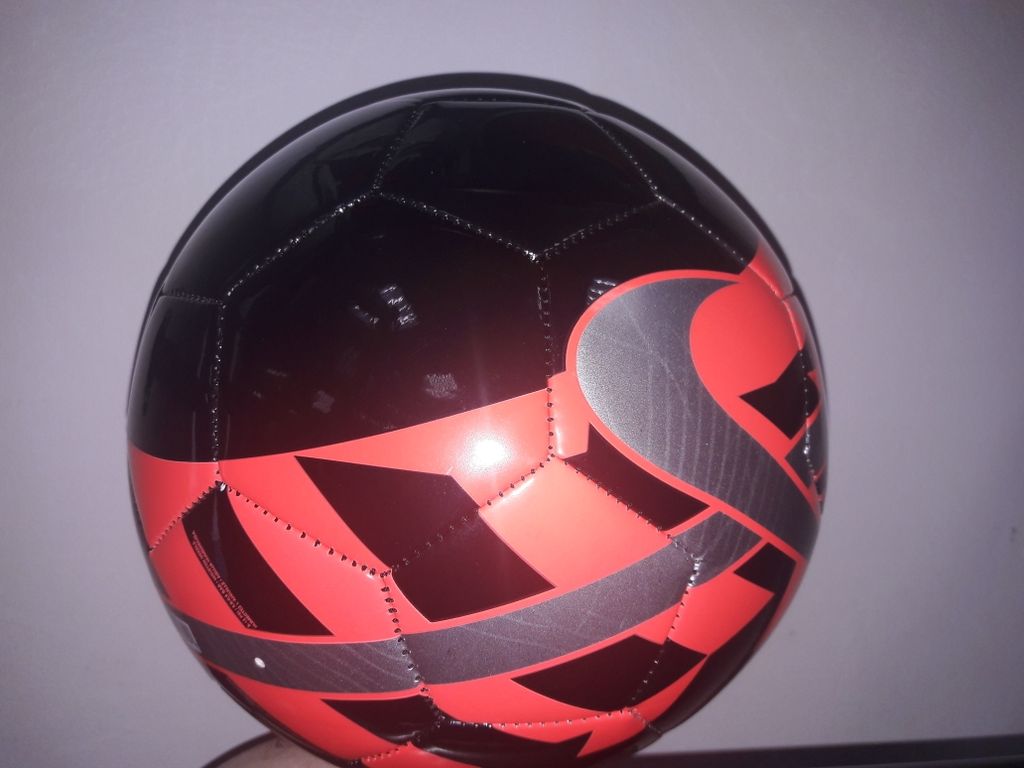 Покрышка мяча изготовлена из глянцевой синтетической кожи (термополиуретан) и одного подкладочного слоя синтетической ткани.