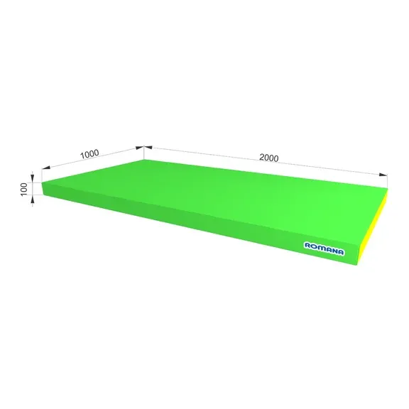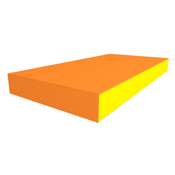 Элемент мягкой формы (мат) из поролона обтянутый винилискожей синего ( оранжевого, зеленого, желтого , бежевого) цвета с желтыми вставками. Подходит для спортивных комплексов больших размеров. Имеет габаритные размеры 2000 x 1000 x 100 мм и плотность 22 кг/м3. Вес с упаковкой 4,8 кг.
