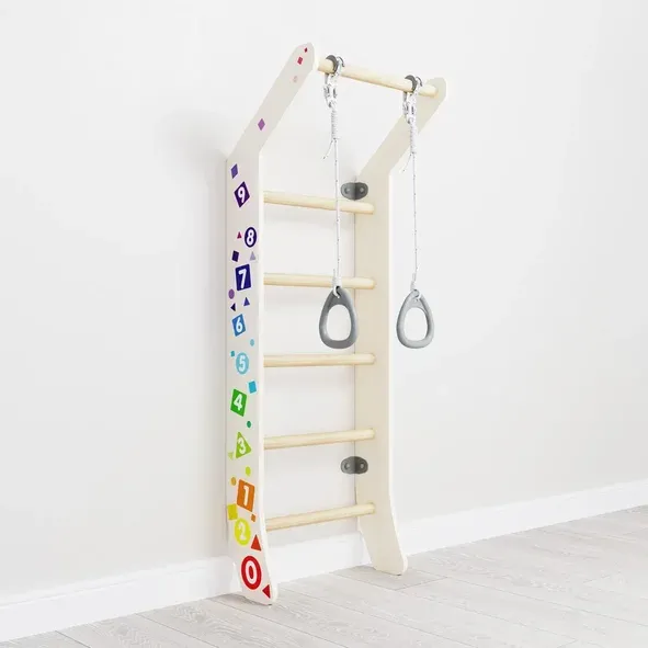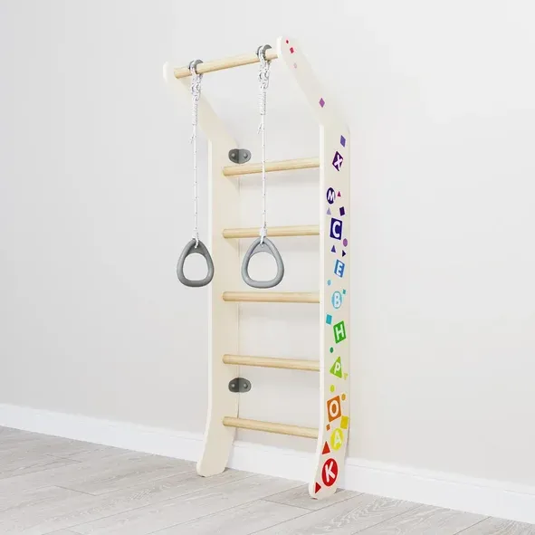 Устанавливается к стене, занимает мало места, способствует более полному физическому развитию детей.