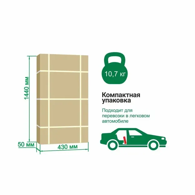 | Объём упаковки, мм: | 1440 х 430 х 50 |