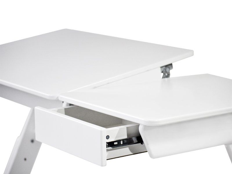 В чем же преимущество растущих парт? Прежде всего в том, что у родителей есть возможность персональной настройки высоты столешницы и угла ее наклона. Это обеспечивает наиболее оптимальную и физиологичную посадку ребенка за столом.