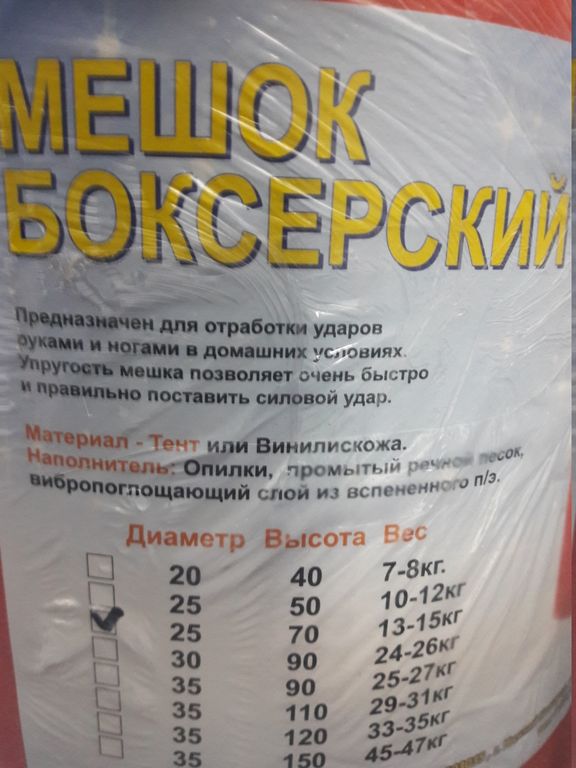 Мешок бокс Идеал 15кг L70 d25.
