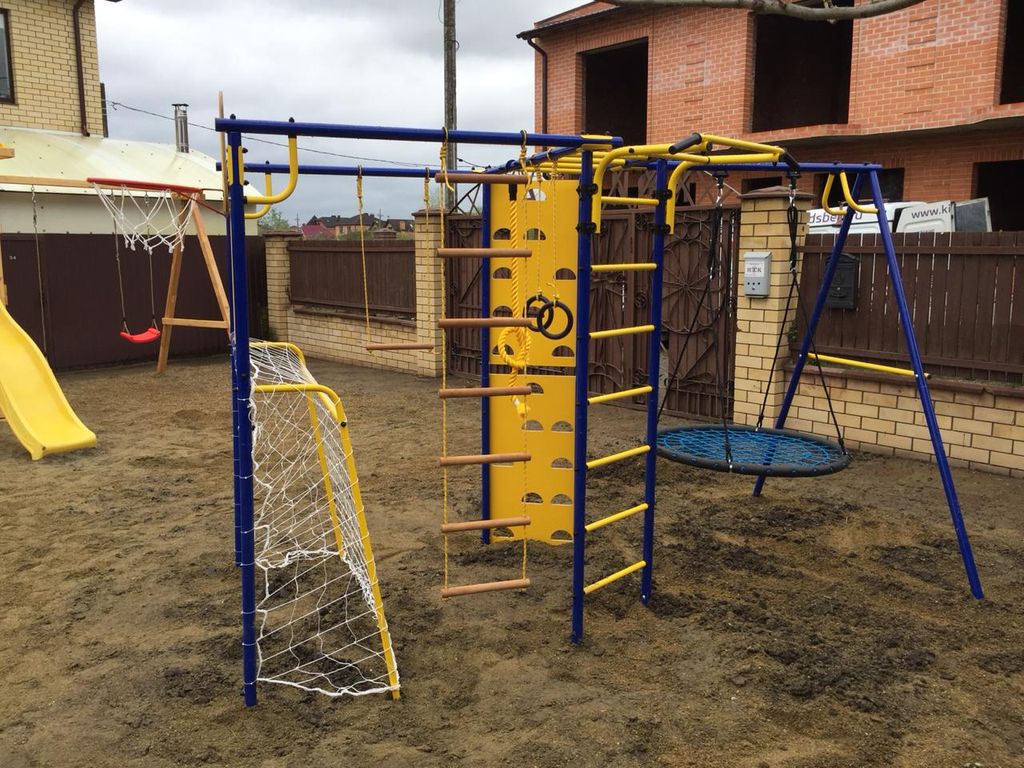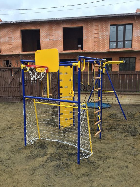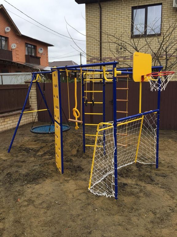 Дачные спортивные комплексы изготавливаются из состовных труб диаметром 42 мм. Навесное оборудование на шнуре.