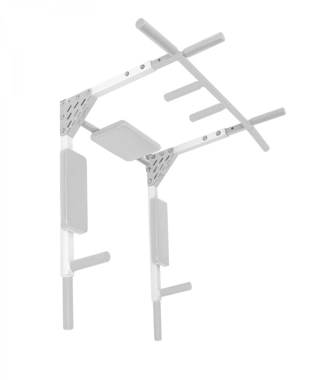 **Имеет два положения: "Турник" и "Брусья-пресс". Вешается на стену на две мощные петли из стали 4 мм. Снятие тренажера с петель и смена положения занимает не более 5 секунд.
