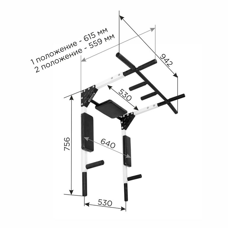 **Турник имеет регулируемый вынос (расстояние от стены) 559 мм и 615 мм и 4 удобных хвата.