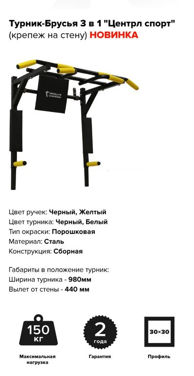 акция Турник-брусья 3 в 1 ЦЕНТРЛ СПОРТ 4900 руб. 5500 руб. Купить в 1 клик В корзину Турник-брусья 3 в 1 ЦЕНТРЛ СПОРТ Крепление к стене: в комплекте 4 шт Турник-брусья 3 в 1 ЦЕНТРЛ СПОРТ Крепление к стене: в комплекте 4 шт Описание Комментарии 0 Описание Характеристики: Ширина турника 980 мм Вылет от стены 440 мм Цвет белый, черный Цвет ручек Черные, Желтые Тип покраски Порошковая Материал Сталь Профиль 30*30 Максимальная нагрузка 150 кг Гарантия 2 года Конструкция Сборная Производство РОССИЯ Комментарии 0 Нет комментариев Добавить комментарий