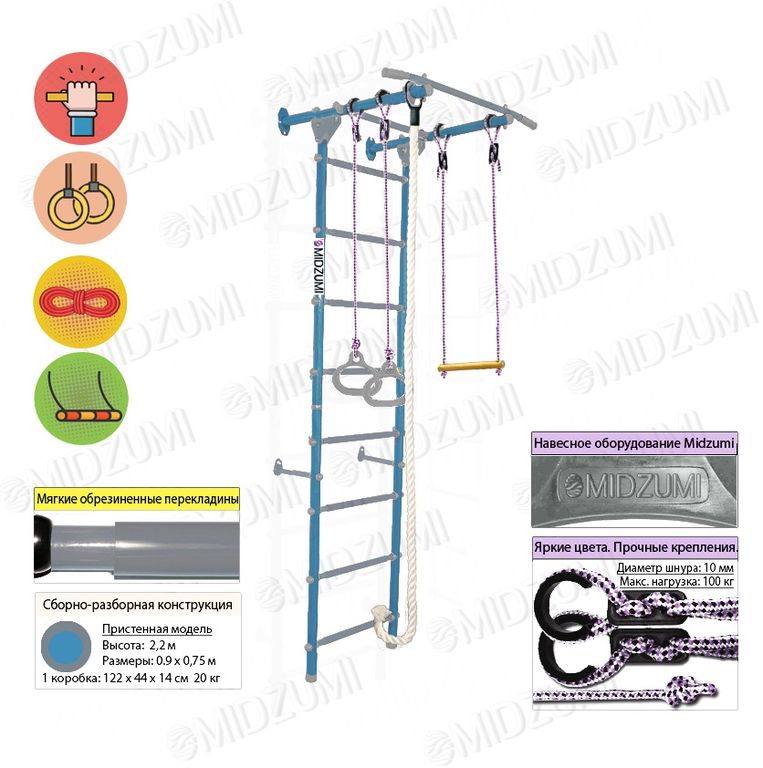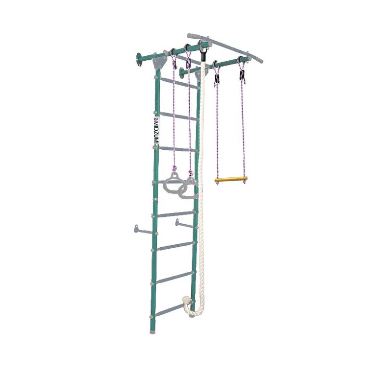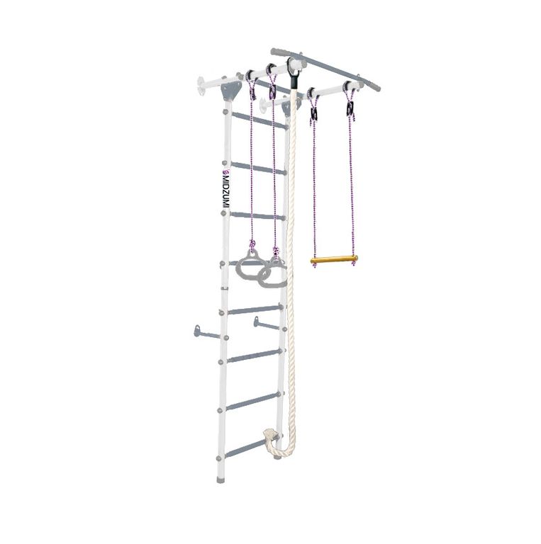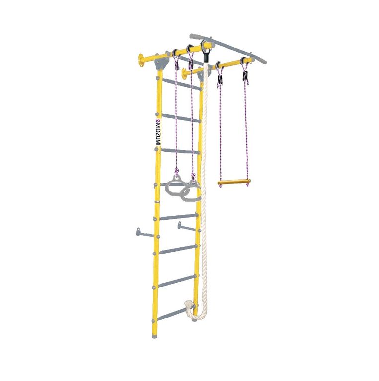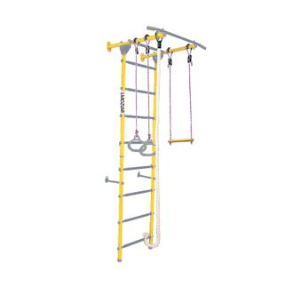 Комплектация: основа - металлическая шведская стенка с турником, гимнастические кольца, канат, трапеция.