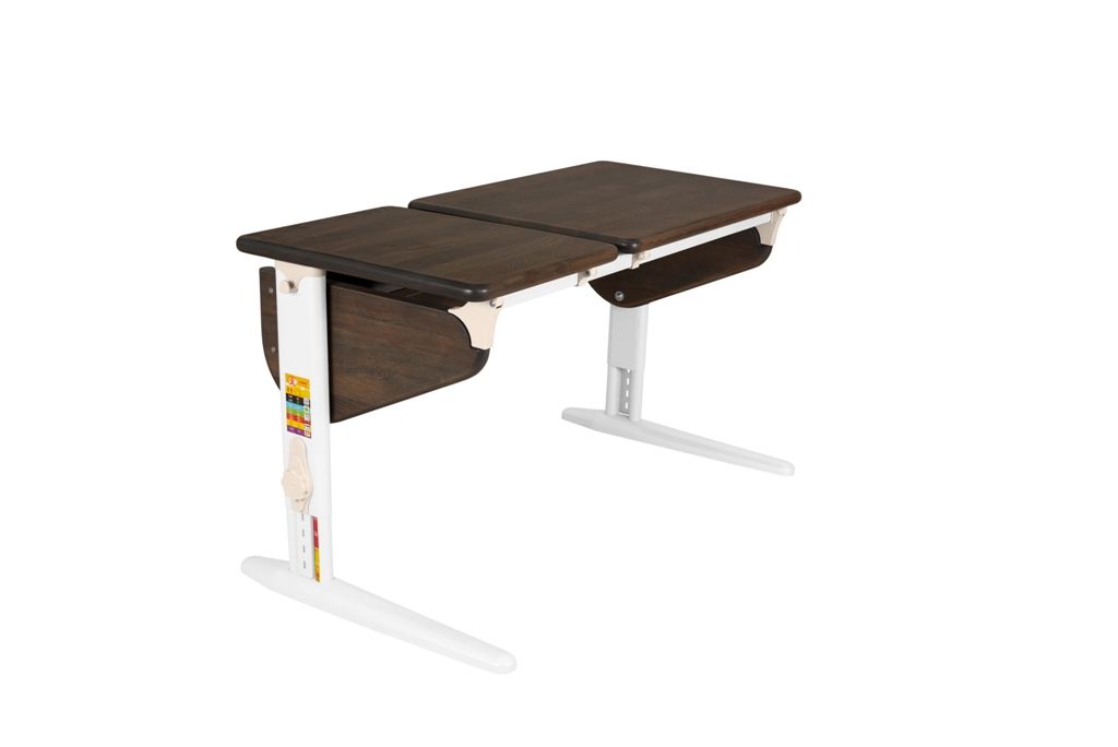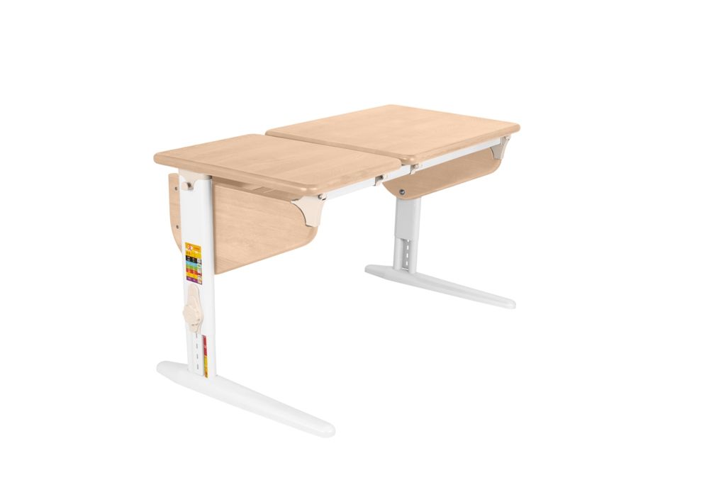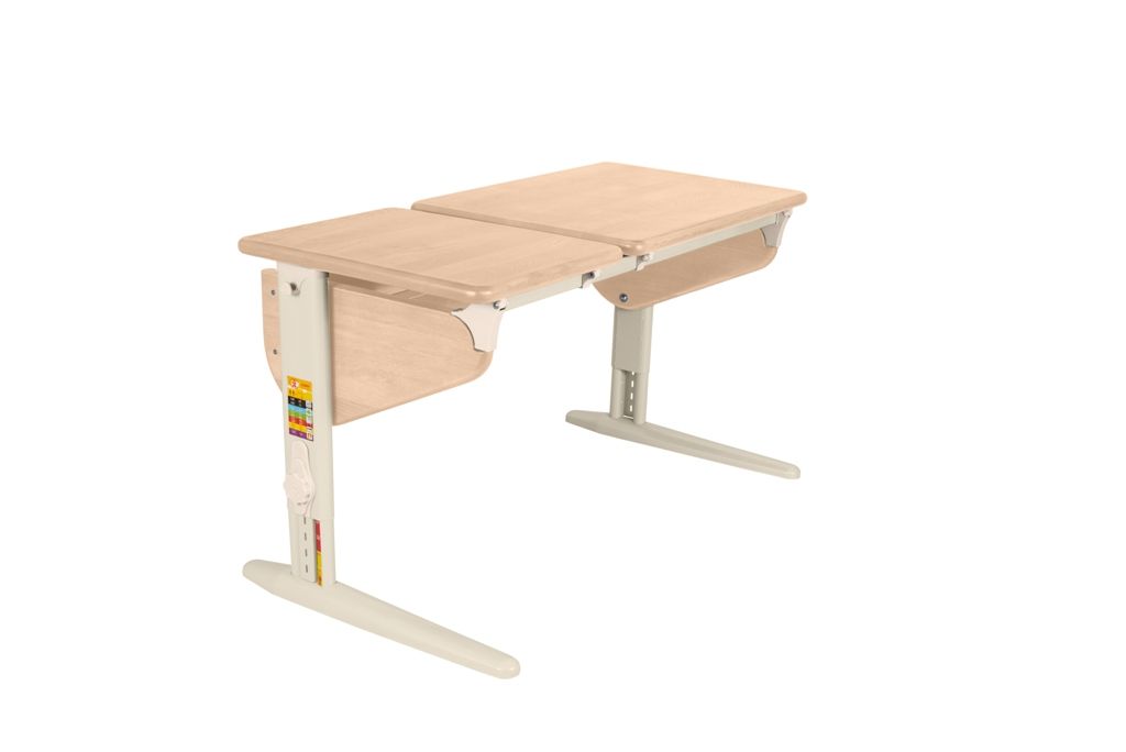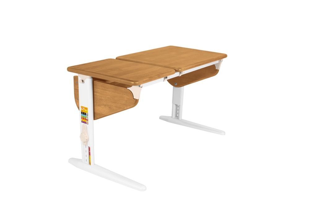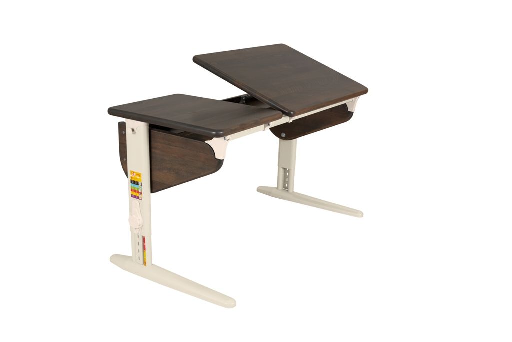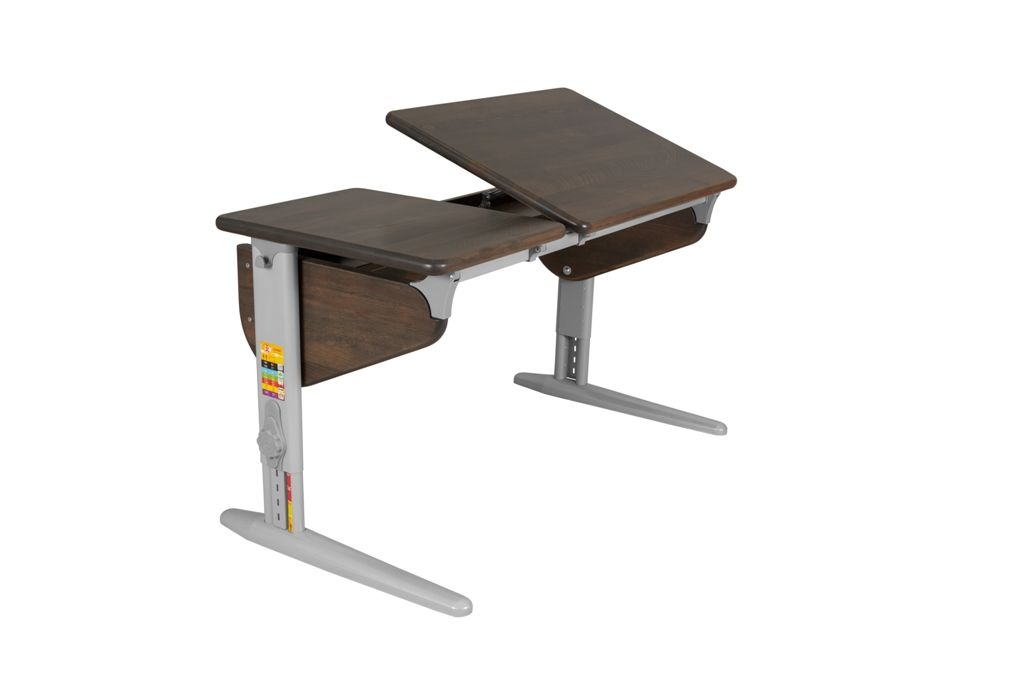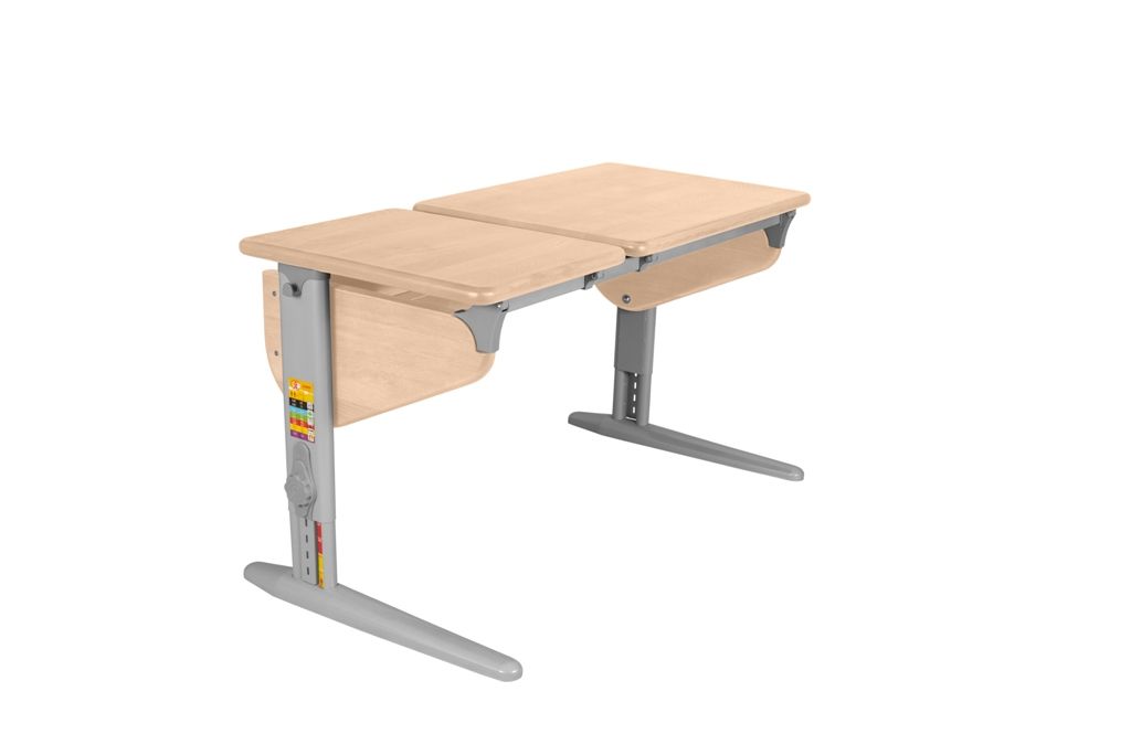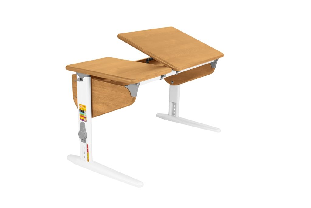 Экологичная и долговечная парта из натурального дерева (массив бука) с двумя рабочими поверхностями: одна регулируется по углу наклона, вторая стационарная.