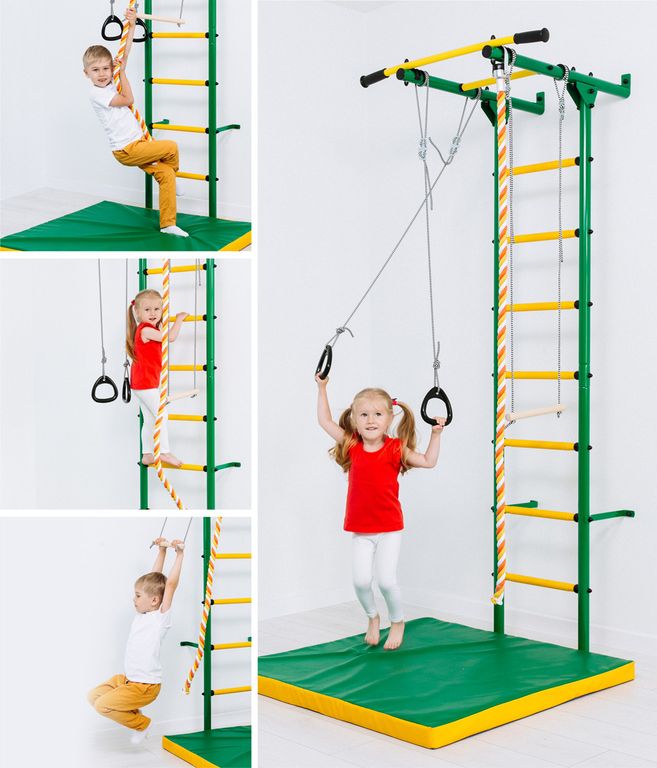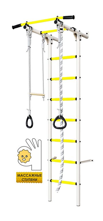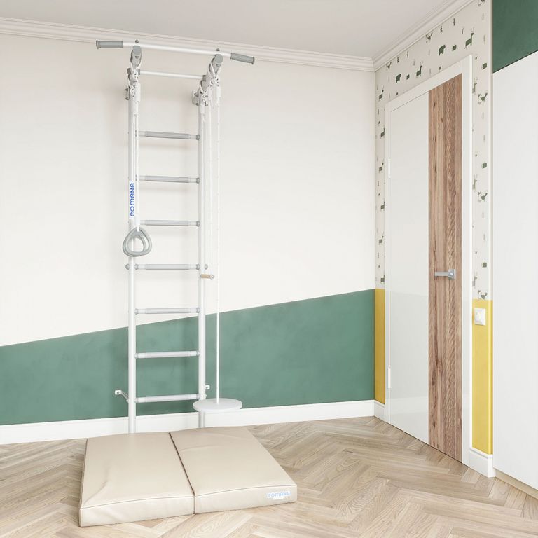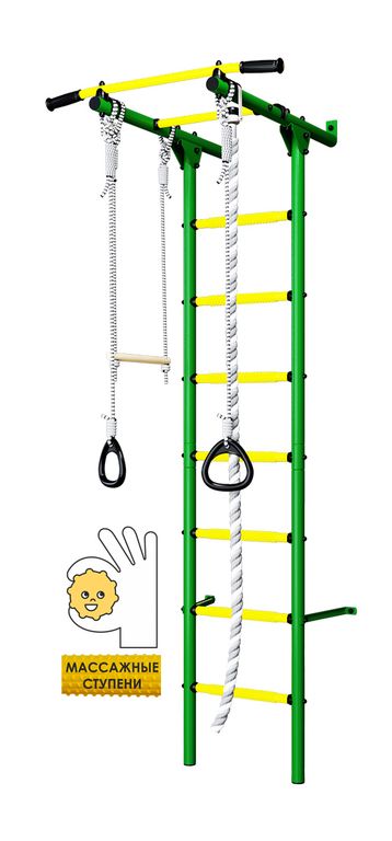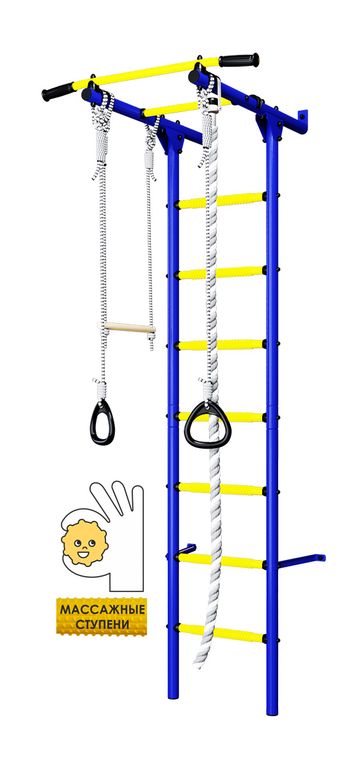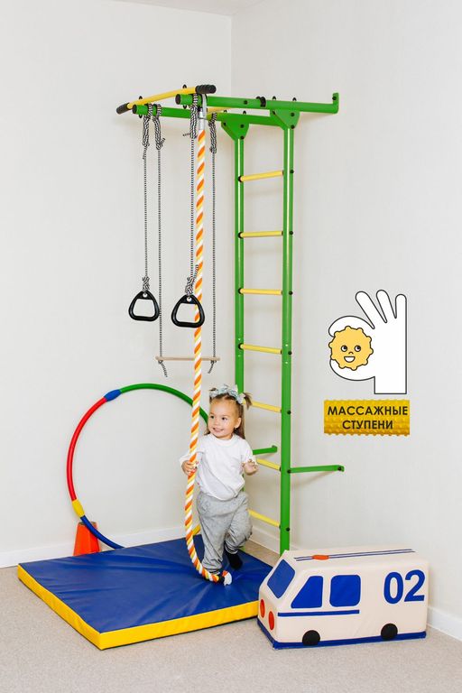 Детскйи спортивный комплекс Пристенный Romana S1 light с массажными ступенями представляет собой сборно-разборную каркасную конструкцию из металлических труб, закрепленную к стене. Основным элементом комплекса является вертикальная «гимнастическая лестница». Для выполнения спортивных упражнений устанавливается навесное оборудование.