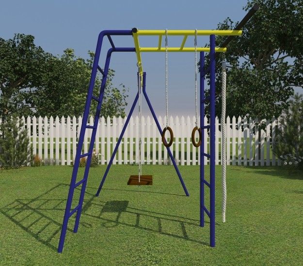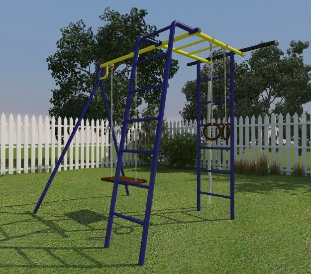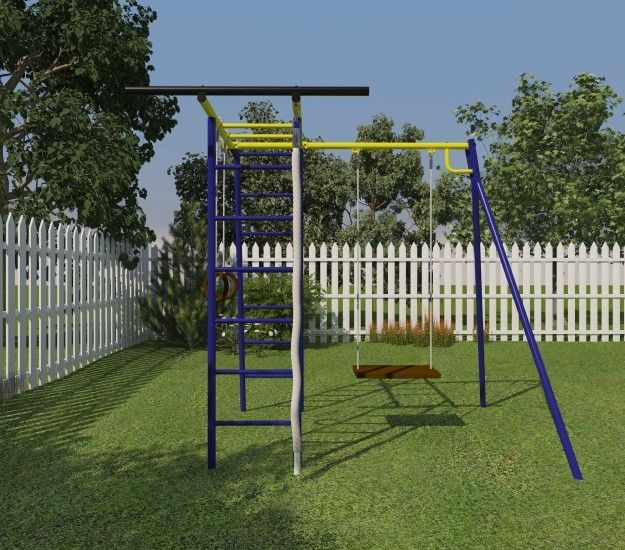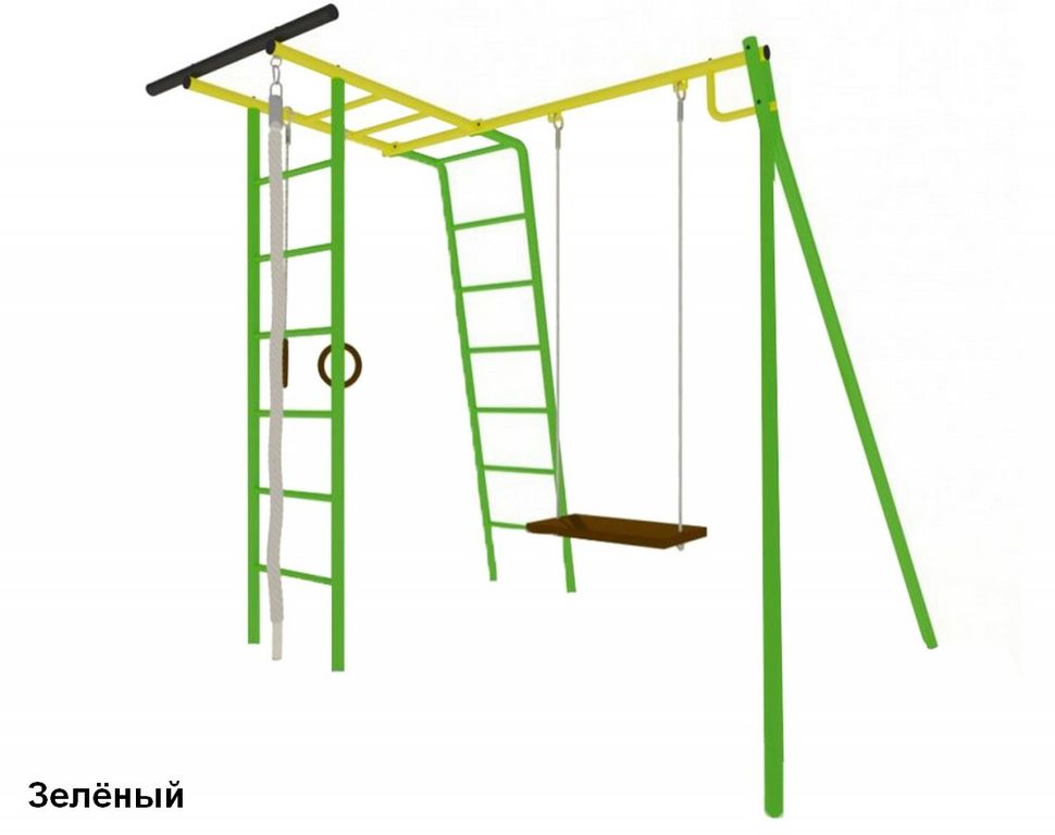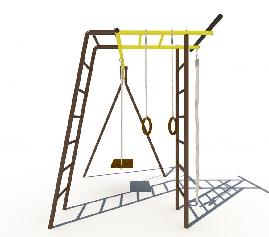 Спорткомплекс состоит из четырех модулей: качели, шведская стенка, рукоход и наклонная лестница.