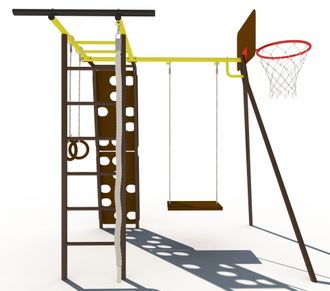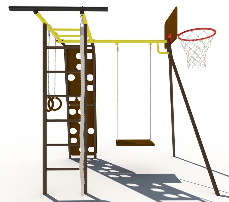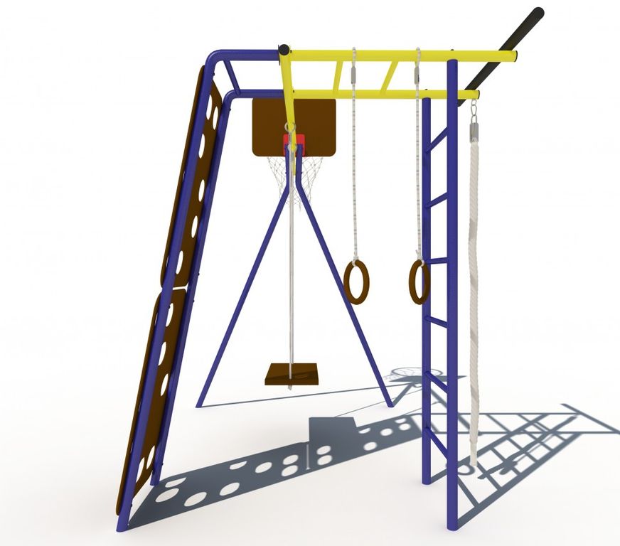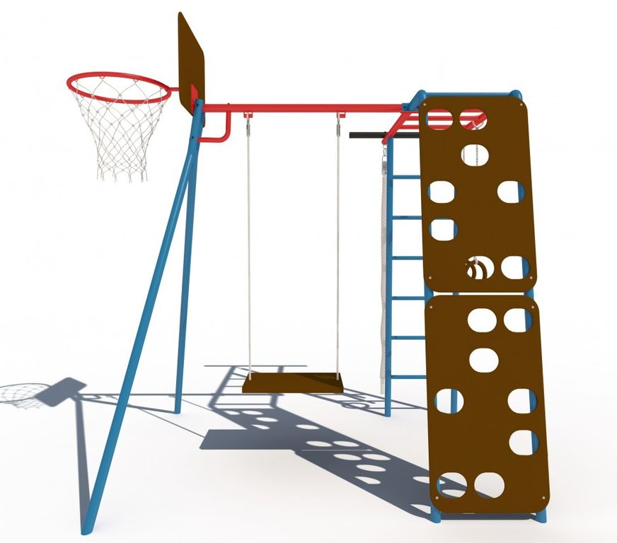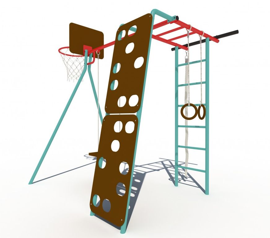 Спорткомплекс состоит из четырех модулей: качели, шведская стенка, рукоход и скалодром.
