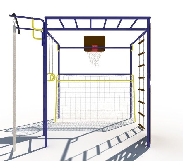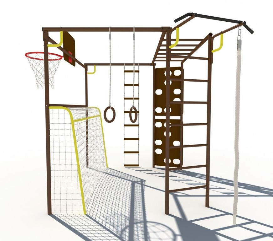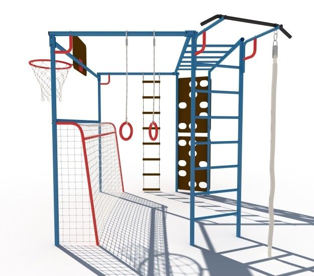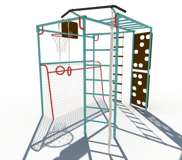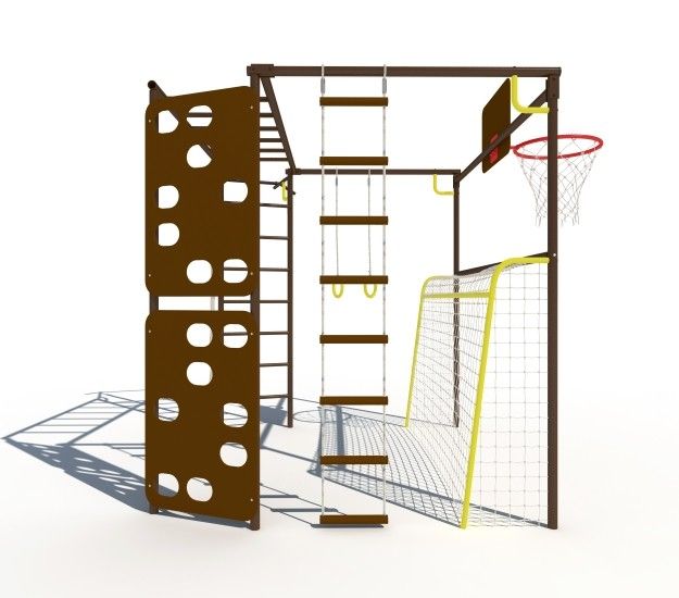 Скалодром, сиденье качелей и баскетбольный щит изготовлены из специальной влагостойкой фанеры, предназначенной для уличной эксплуатации.