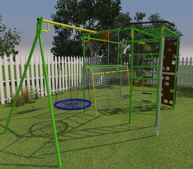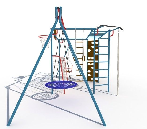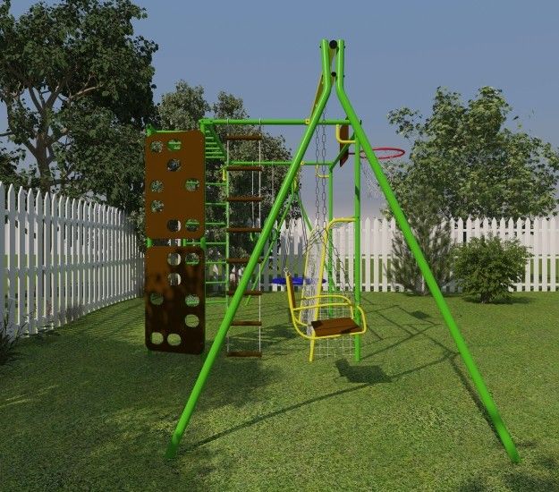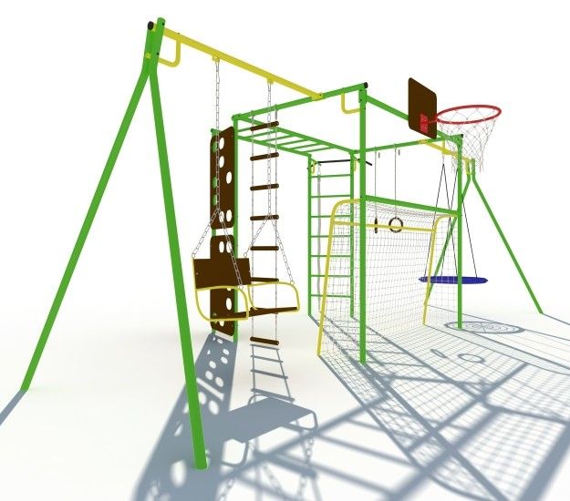 Скалодром, сиденье качелей и баскетбольный щит изготовлены из специальной влагостойкой фанеры, предназначенной для уличной эксплуатации.