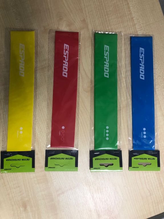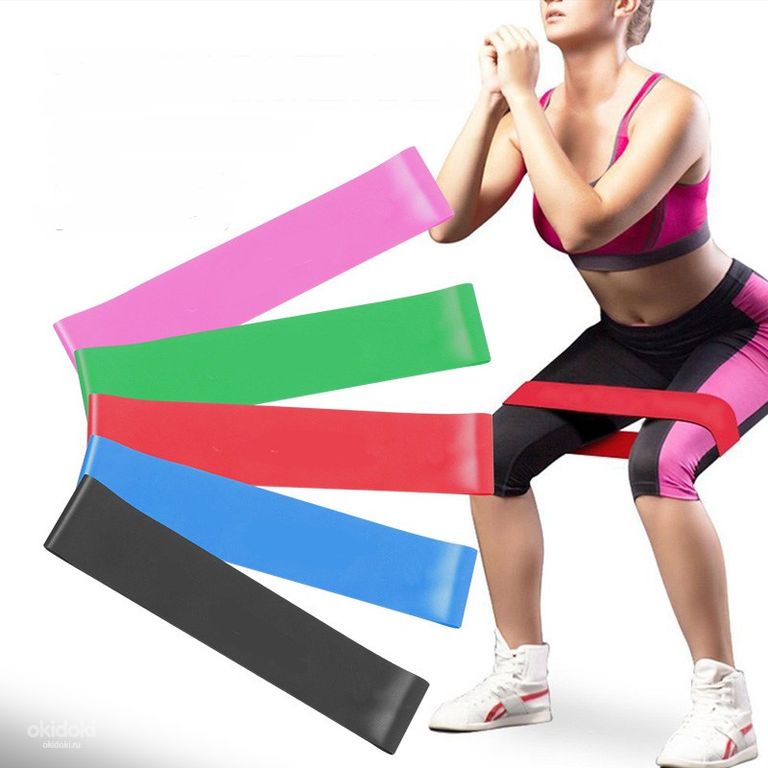 ** Существует 5 видов фитнес - резинок разного цвета с разной силой растяжения: черная , зеленая , синяя , красная , желтая .