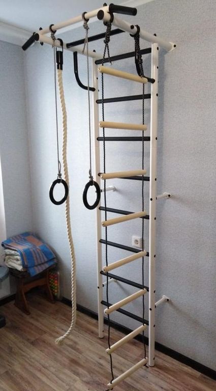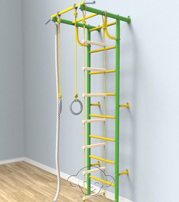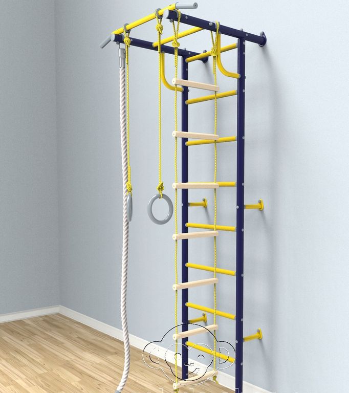 Каркас комплекса изготовлен из трубы диаметром 42 мм, покраска порошковая. Ступеньки – из трубы 25 мм, имеют массажное и противоскользящее ПВХ покрытие.