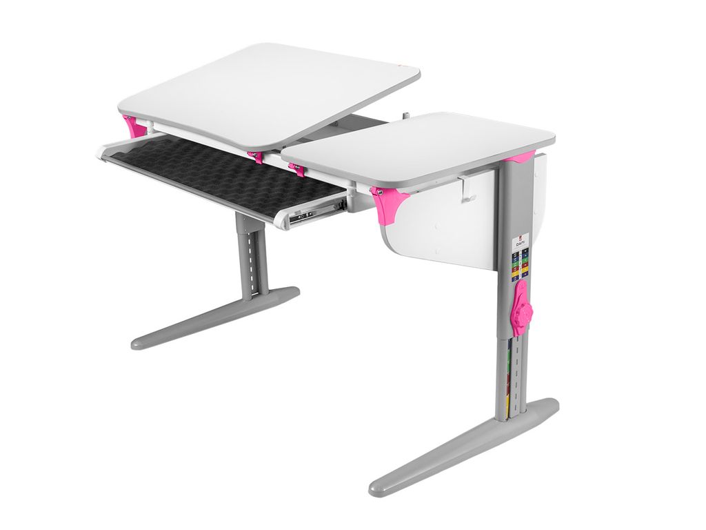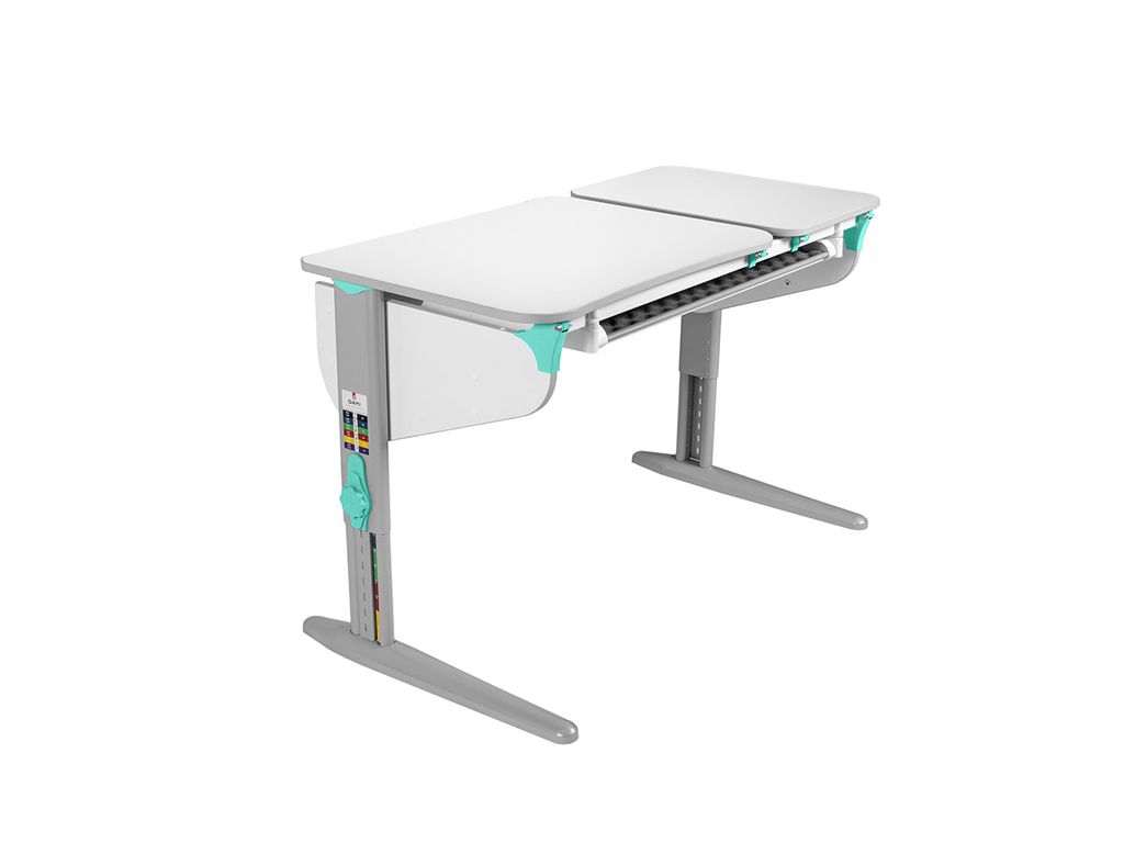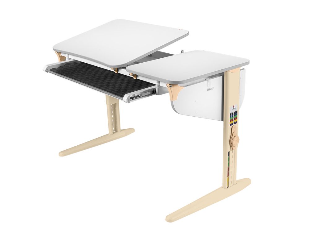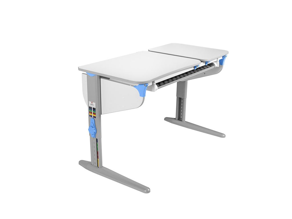 • Модель с двумя эргономичными столешницами: одна регулируется по углу наклона, вторая стационарная.