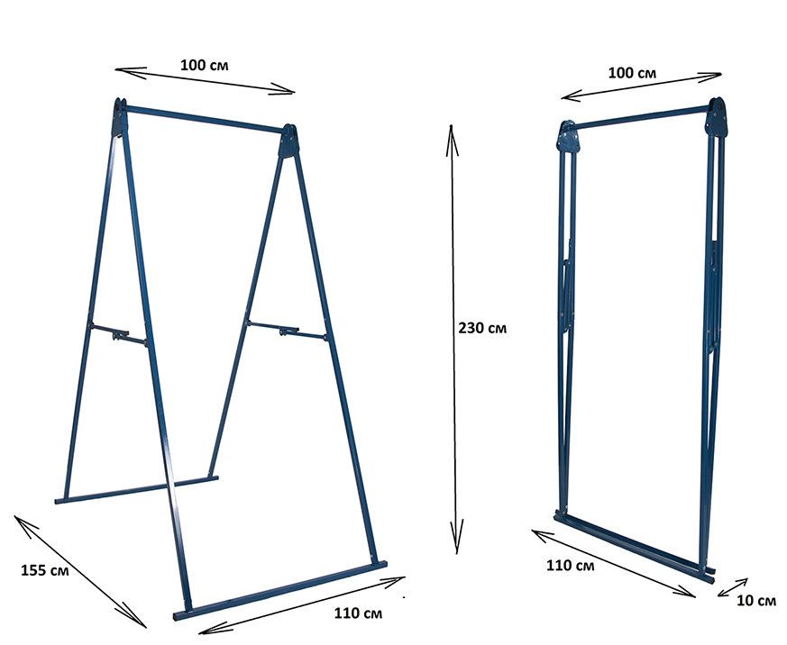 В собранном состоянии комплекс занимает площадь около 1,5 кв. м, его высота – 2 метра 10 см, Его можно установить даже в малогабаритной квартире.