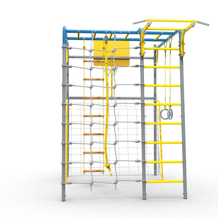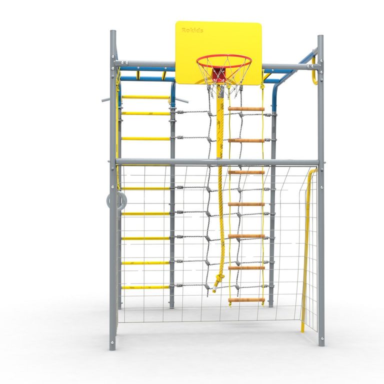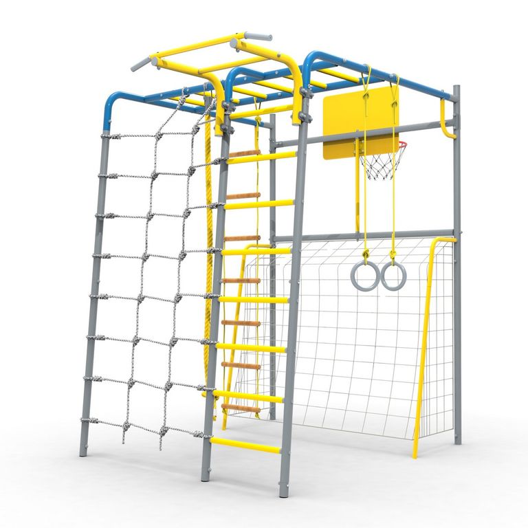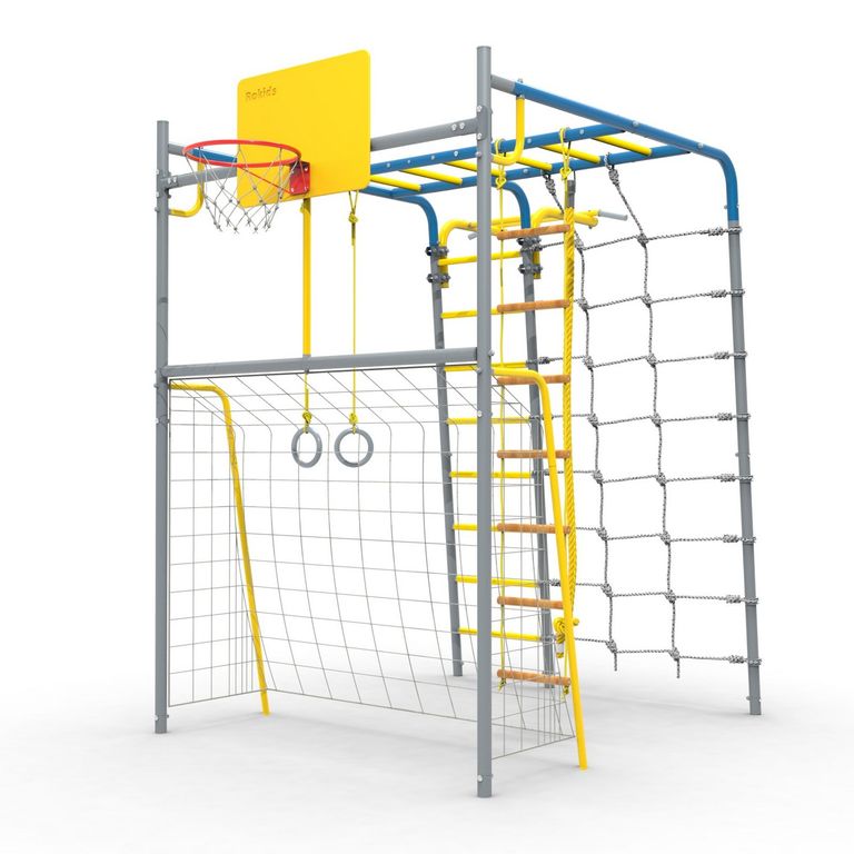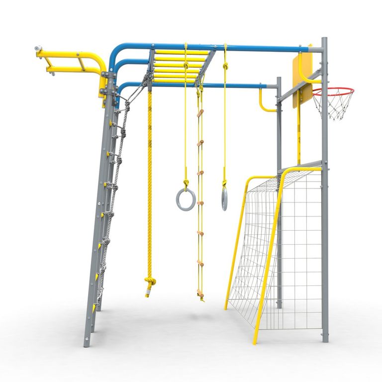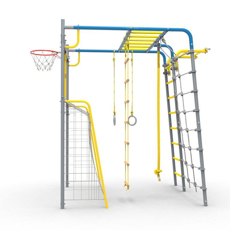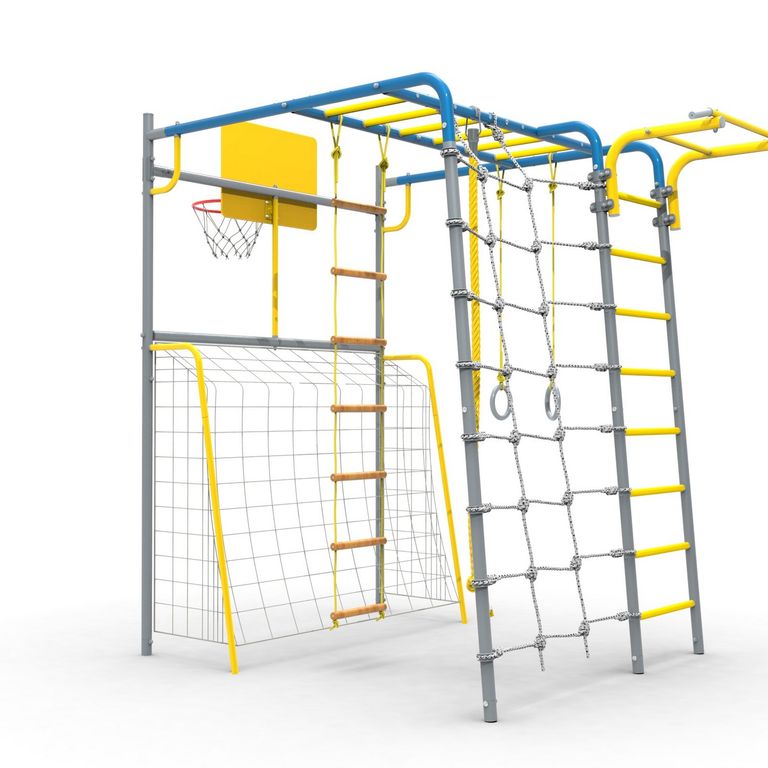 Детский спортивный комплекс уличного типа УДСК-12 "Физрук" предназначен для установки на приусадебном (придомовом) участке или на даче. Данна модель будет интересна и полезна для детей от 3 до 12 лет. Она способствует их всестороннему гармоничному физическому развитию, организации игр и домашнему досугу на свежем воздухе. Этот детский спортивный комплекс представляет собой достаточно компактную конструкцию, для размещения которого понадобится совсем мало места. Достаточно лишь найти ровный и свободный прямоугольный участок земли размером 2,5 х 1,7 метра. В комплектацию уличного детского комплекса "Физрук" входят: ворота, сетка для лазания, кольца гимнастические, канат, кольцо баскетбольное со щитом, лестница веревочная, турник (регулируемый по высоте), рукоход, металлическая лестница со ступенями из ПВХ. При желании, Вы можете к комплексу докупить одну или две дополнительные секции для качелей.