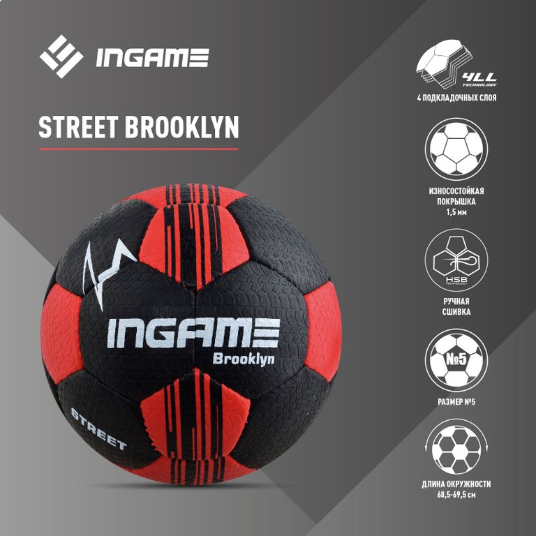 Футбольный мяч Ingame Street Brooklyn относится к линейке Street, покрышка выполнена из резины толщиной 1,5 мм.