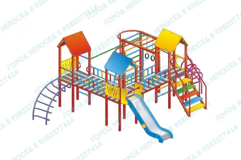 | Комплектация | Включает элементы для лазания, горка скат, лестницы и пандусы, рукоход, спиральный шест, турник.. |