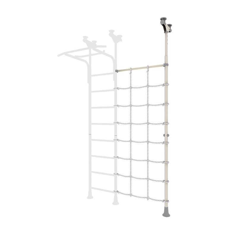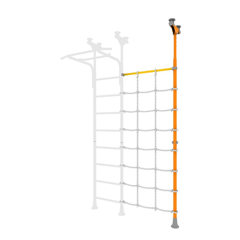 Распорный комплект с канатным лазом служит дополнительным элементом к спортивным комплексам ROMANA. Его преимущество заключается в возможности установки с любой стороны лестницы комплекса. Лаз дает детям простор для новых интересных игр и выполнения разных упражнений: вис, подтягивания, лазание. Сетка лаза выполнена из шнура повышенной прочности.