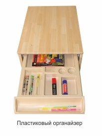 В данной модели подвесной тумбы производителями предусмотрены два ящика, которые способны вместить большое количество школьных принадлежностей и не только. Например, дисков, канцелярских товаров и других принадлежностей. Обратите внимание на отделение для канцелярских товаров. Оно выделено визуально и представляет собой пластиковый лоток с отделениями для различных предметов – тетрадей, альбомов, карандашей, липкой ленты и прочего.